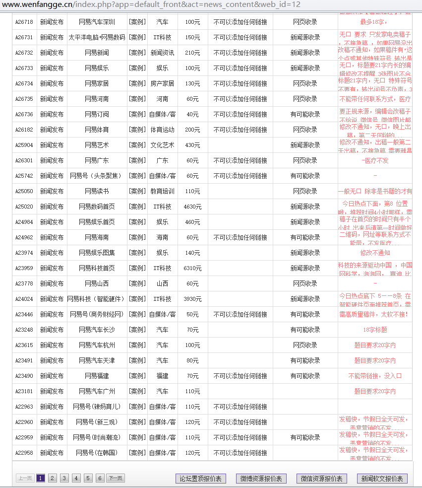网易新闻部分频道发稿资源价格