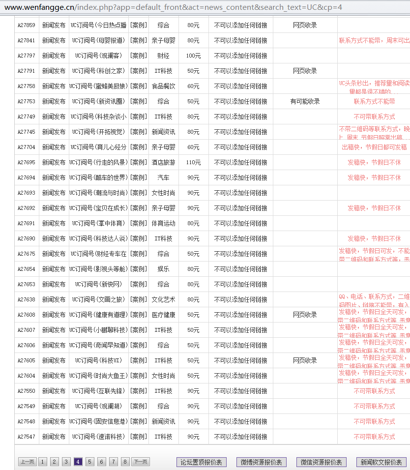 UC云观平台部分软文发稿资源价格