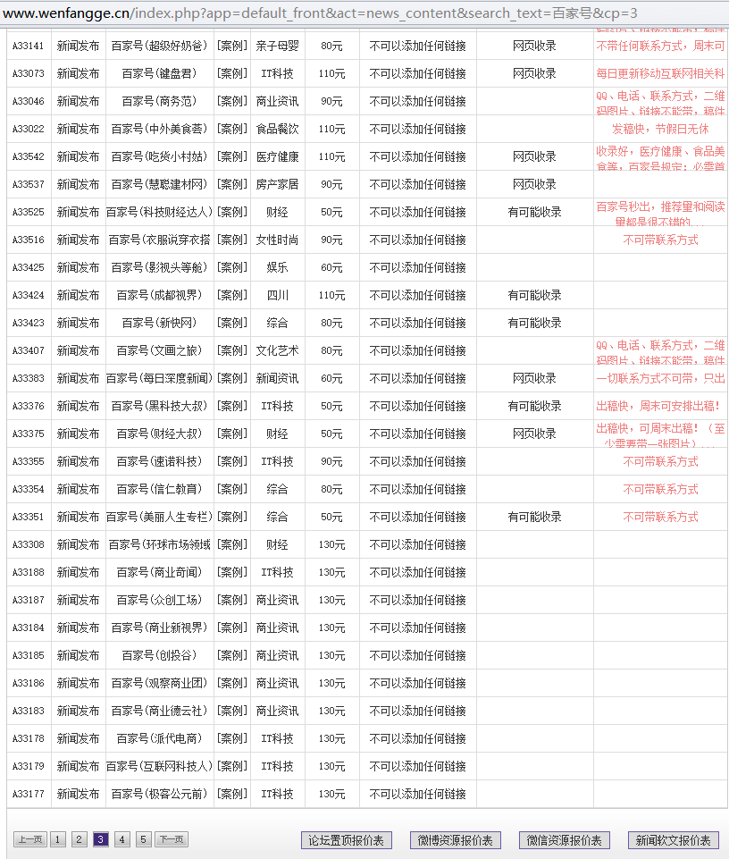 文芳阁部分百度百家号媒体资源发布价格
